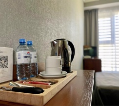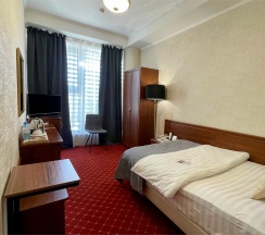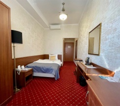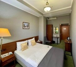 Комфортабельный стильный однокомнатный номер. Предлагает размещение как одного, так и двух человек. Уютный интерьер, классическая мебель, широкая двуспальная кровать или две односпальные кровати. Для удобства гостей в комнате - телевизор, телефон, сплит-система. Ванная комната оснащена итальянской сантехникой, феном, косметикой, комплектом полотенец, халат и тапочки. В номере имеется мини-бар, чайная станция и сейф. В стоимость проживание входит посещение фитнес-зала.