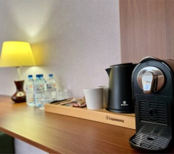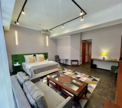 Он оснащён мебелью из натурального дерева, роскошными постельными принадлежностями, удобной двуспальной кроватью с ортопедическим матрасом, выделенной зоной с рабочим столом и комфортной ванной комнатой. Для удобства гостей в комнате - телевизор, телефон, сплит-система, мини-бар, чайная станция с капсульной кофе-машиной. В стоимость проживание входит посещение фитнес-зала. Идеальный выбор как для отдыха, так и для деловых путешествий.
