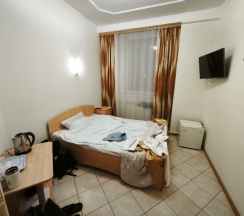 Дорогие друзья мы с женой сняли Номер на двоих.Номер чистый уютный, в целом совсем не плохо. Из минусов трасса(шумно) курить приходится бегать на улицу, нет кондея в номере и чайник общаковый в коридоре как и куллер. А так нам понравилось. Рекомендуем.