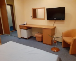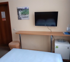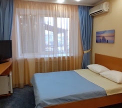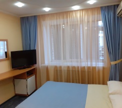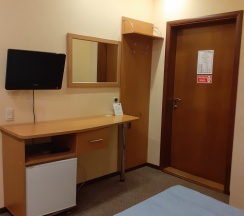 Одноместный однокомнатный номер. 2-спальная кровать, с/у с угловой ванной, мини-холодильник, кондиционер, телевизор, телефон, фен, полотенцесушитель электрический.