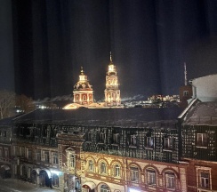 Только приятные впечатления. В дни заезда шли проливные дожди. Были 5 ночей. Хотела, чтобы вид из окна был на улицу Московская, предоставлен номер с этим видом. Шикарно. Колокольный звон, сам Спасский собор. Были праздничные дни и гремела музыка напротив из кафе. правда. до 6 утра, но окна не закрывали. Кондиционер не включали. Завтраки понравились. Сам ресторан заслуживает похвалы в оформлении зала. Все очень мило, чисто, вкусно. Белье менялось ежедневно. В номере чисто было всегда. Персонал приветливый. Для меня Киров и гостиница Чарушин (Центральная ) - это мое милое и трогательное, как говорится, из детства-юности. Спасибо за такой теплый прием!