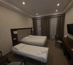 Гостиница расположена в центре, в шаговой доступности от всех достопримечательностей города. Номер чистый, большой, есть все необходимое, большая ванная комната, все как на фотографиях. Завтраки вкусные, в соседнем кафе, уборка каждый день. Персонал вежливый, доброжелательный. Все очень понравилось. Спасибо. Рекомендую 👍