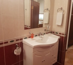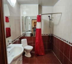 Минусы: отсутствие шкафа для одежды, нет кондиционера (только вентилятор), и поддон в сан узле(((его пактически нет( бортик высотой 1см)вся вода льётся на весь сан.узел. Чтобы сесть на унитаз ,ноги ставить нужно в этот поддон. Ноги все время мокрые.летом ещё ладно, а зимой как?? На одну ночь нормально остановиться. Цена-качество соответствуют.