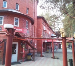 Нам очень понравился этот отельчик! 10 минут от центра на машине по хорошей дороге. Особенное удовольствие, что рядом сосновый Бор, в пешей доступности есть озеро. Сама гостиница выполнена в необычной стилистике. Внутри интерьеры соотвествующие. Окна в нашем номере были не в стену, а в крышу: интересно. Мы жили в двухкомнатном номере: две односпальные кровати, одна двухспальная, свой телевизор, свой туалет и душ. Снижаю звездочку лишь за слабый напор воды в унитазе и отсутсвие кондиционера. А так: огромные молодцы, очень все приятно! Спасибо за гостеприимство!