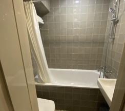 Дают одноразовые тапки, туалетный набор, гель для душа и шампунь, бутылку питьевой воды 0,5л. Каждый день убираются и меняют полотенца, набор из 3 – для тела, ног, лица (тоже большое, наматывала на голову). Ванная маленькая, но мне это неважно. Вопросы только к напору воды, но мне кажется дело тут скорее в лейке, очень большой с редкими отверстиями.