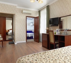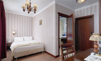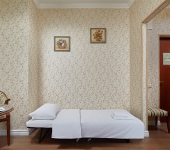 Просторные комфортабельные номера, более востребованы гостями для длительного пребывания. Удобны для семейного размещения с возможностью установки дополнительных спальных мест. В номере возможно размещение до 4-х человек. Дополнительные места – еврораскладушка. Номер может быть с двумя или одним окном.