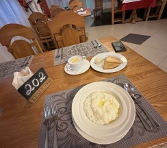 Номер в целом неплохой за свою стоимость , чистенько , уютно , комфортно , от жары спасал кондиционер , а вот холодильник по ночам шумел , в душевой надо ловить температуру воды ,долго настраивать , завтраки и обеды очень вкусные тут прям респект поварам 🫶🏻, администраторы были вежливы и учтивы , неудобно только , что нет гладильной доски в номере , приходилось постоянно её просить у администратора, стирка белья только за наличный расчёт-500 рублей за стирку , порадовало , что смогли отстирать сложное пятно и используют приятный ароматный кондиционер для белья . На территории очень красиво , много зелени , живописный вид из окна и с веранды , очень понравилась атмосфера комплекса