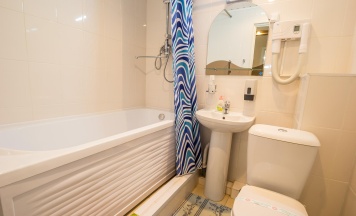 Номер включает в себя: две односпальные кровати, мебель необходимую для комфортного проживания, телефон с выходом на ресепшн, высокоскоростной Wi-Fi, бесплатное спутниковое TV, мини-холодильник, кондиционер, ванную комнату с душевой кабиной, фен, гигиенические принадлежности.