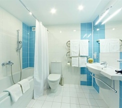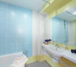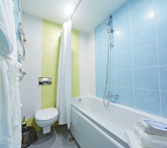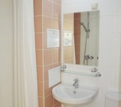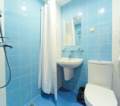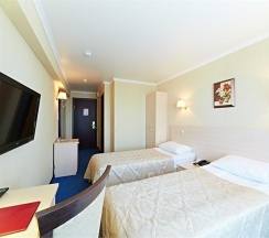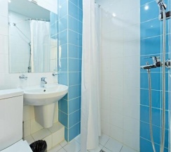 Номер состоит из небольшой прихожей и спальной комнаты. К услугам гостей 1 двуспальная кровать или две односпальные кровати. так же в номере установлен кондиционер, телевизор и холодильник. В ванной комнате имеется душевая кабина, предоставляется комплект полотенец, фен и косметические принадлежности.