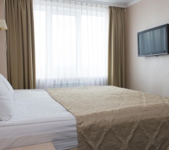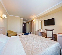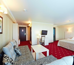 Однокомнатные номера повышенной комфортности, предназначенные для размещения одного или двух человек, состоящие из прихожей, гостиной и спальной зоны. К услугам гостей двуспальная кровать или две односпальные, диван, телевизор со спутниковыми каналами, доступ в Интернет Wi-Fi. Также в номере имеется холодильник и электрический чайник. В ванной комнате установлена душевая кабина, имеется фен. Гостям предоставляется комплект полотенец, халат и тапочки и набор косметических принадлежностей.