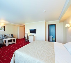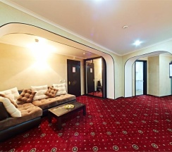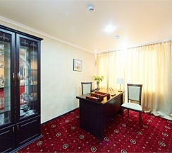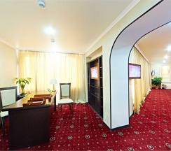 Трехкомнатный номер повышенной комфортности, состоящий из спальни, гостиной зоны и кабинета. Особенность данного номера это компактная мини-кухня. Оснащение номера: двуспальная кровать, диван, кондиционер, ж/к телевизор, кабельное телевидение, wi-fi интернет, холодильник, телефон, фен, электрический чайник, мини сейф, письменные принадлежности, туалетный столик, комплимент от отеля.