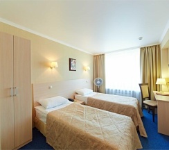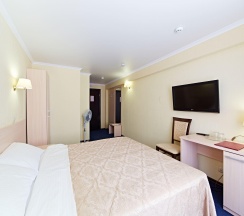 Лаконичный номер, с набором необходимых услуг для одного или двух человек. В номере: 1 двуспальная кровать (160см.) либо две стандартные кровати (90см.), ж/к телевизор, кабельное телевидение, wi-fi интернет, холодильник, телефон, фен, туалетный столик.