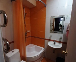 Не понравилось: В гостинице 5 этажей, но лифт отсутствует. В ванной комнате нет лотка под душ - вода просто льется на пол и потом уходит в слив (лично не проверяла). В санузле не закрывалась до конца дверь.