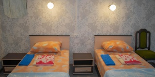 В номере: балкон, 2 односпальные кровати, прикроватные тумбочки, журнальный столик, стулья, кабельное тв, холодильник, wi-fi интернет, душ, туалет, полотенца, мыло, Фен, электрический чайник по запросу.