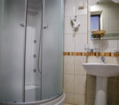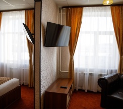 Уютный однокомнатный номер, в котором могут разместиться один или два человека. В номере предусмотрена вся необходимая мебель: двуспальная кровать, туалетный столик с зеркалом и стулом, шкаф для одежды, мини-холодильник, чайник, телевизор и ванная комната с душевой кабиной, или ванной. Средняя площадь номера 20 кв.м.