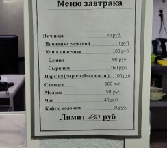 Завтраки на выбор до 300 рублей, поесть можно на эти деньги. В целом состояние провинции, но все чисто, переночевать в самый раз