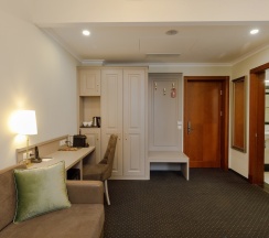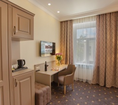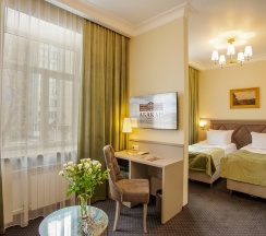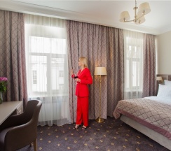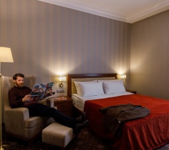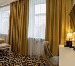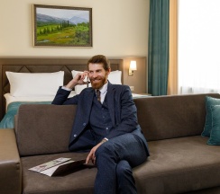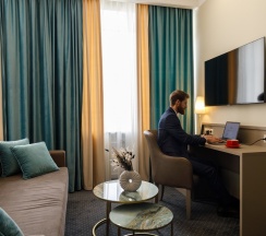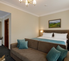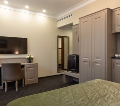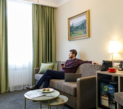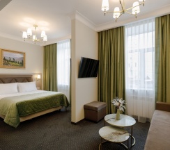 Просторный номер для работы и отдыха. В номере: комфортабельная двуспальная кровать, диван, бесплатный Wi-Fi, ЖК ТВ с отличным выбором каналов и технологией Smart TV, рабочий стол, сейф, кондиционер, мини-бар, кофемашина, душ, фен.
