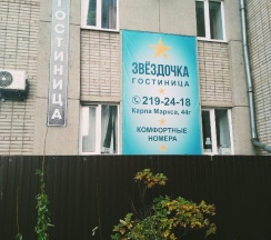 Гостиница ,,Звездочка"находиться в центральной части города. Очень комфортная обстановка. В номере уютно, чисто. Особенное спасибо администратору Алене. Очень доброжелательная, отзывчивая, внимательная внимательная девушка.