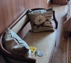 Мебель в нормальном состоянии, вода в умывальнике холодная и горячая, есть мини-холодильник, стол письменный, чайник, графин, стаканы, кофейные кружки, кондей, телевизор.