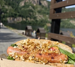Очень вкусно делают бургеры, наггетсы и хот-доги в маленькой торговой точке на базе. Чуть не проглотили пальцы) Фото не успели сделать. Объелись, хот-дог уже не влез, был снят и съеден на набережной Дивногорска.