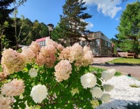 Были на корпоративе. Очень понравилось оформление, красивые клумбы, виды на горы.
