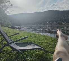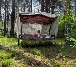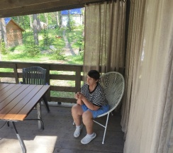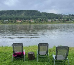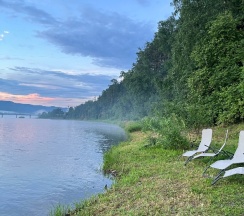 Отличное место. Домики чистые, около каждого не мангал, а удобный гриль+ к нему чемоданчик с приборами, готовили с удовольствием. Пляжная сумка есть в номере. Отдельно домик с обширной библиотекой и настольными играми. Спуск к реке удобный ( маме 77 лет, спокойно спускалась). На пляже лежаки, нам диван - качель туда поставили. Персонал отличный. Баню затопили- ух! От мамы пожелание: при входе в домик, на лестнице, хотя бы с одной стороны сделать перила- лестница крутая, маленьким и стареньким тяжело подниматься. В общем всем рекомендую. Кто любит тишину, всё-таки в будни. Мы были в будни и застали пятницу, в субботу уехали. Обязательно приедем ещё. Желаем процветания!