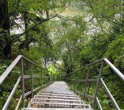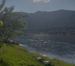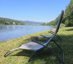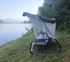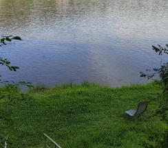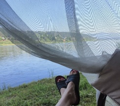 Утром проснулась отдохнувшей — дождь закончился, и я спустилась по крутой лестнице к берегу Маны. Этот крутой но в тоже время лёгкий спуск стал лучшей утренней зарядкой — в городе так не позанимаешься! А потом — шезлонг, медитация, тихая гладь воды...