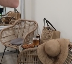 Про домик. Чистый. Аккуратный, постельное белое, отельное, застеленное. Кровать удобная. Полотенец куча! Даже была пляжная сумка с полотенцами для пляжа👏 посуда вся есть. На самом пляже шезлонги всякие и качеля🤝персонал не надоедливый, отзывчивый.