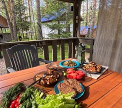 Отличная база отдыха, с мужем и пёселем приезжали на выходные, очень понравилось! Везде чисто и уютно, постельное белье как в гостиницах, в домиках есть всё необходимое, отдельное спасибо за гриль, шашлык вкуснее, чем на мангале! Персонал приветливый и заботливый!Будем приезжать еще)))