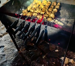 Есть обычный мангал, так и газовый гриль, к ним набор для гриля. Всё чисто и аккуратно. Персонал очень приятный и отзывчивый, все вопросы решают быстро и всегда с улыбкой и с хорошим настроением.