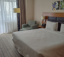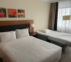 Hilton Garden Inn Красноярск- место, где вам всегда рады. Культурный город- отличный отель. В декабре 2025 Хилтон предлагал новогодний тариф- очень было заманчиво, самолет прилетел рано в 5 утра , номеров по этому тарифу еще не было готово, однако ресепшен, а именно менеджер Андрей, предложил поднять категорию со скромной доплатой. И номер оказался уютным! Завтраки разнообразные, свежевыжатые соки- огонь). Блюдо из оленины в номер и пирожное «ведерко картошки»- неизменно на высоте вкуса. Особо отмечу, возможность за символическую плату гостю отеля посещать спортклуб WorldClass - а там роскошный бассейн, хаммам, сауны, соляная комната! И вежливость, даже учтивость персонала, праздничные интерьеры- все для гостей! Благодарю.