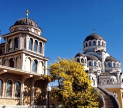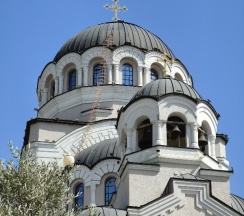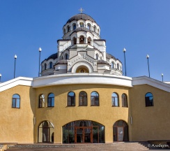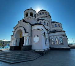 История храма связана с обнаружением остатков древней византийской базилики и захоронения, датируемых IX веком, на месте строительства. В основание современного здания был заложен камень из найденной базилики, а под престолом храма находится рака с мощами, найденными на месте раскопок. Внутреннее убранство храма поражает высоким уровнем росписи, выполненной студентами Российской академии живописи И. Глазунова.