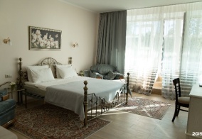Первый этаж: просторный зал с банкетным столом до 35 посадочных мест, кухня оснащена всей необходимой бытовой техникой, сауна, хамам бассейн, санузел. Второй этаж: 8 спальных комнат с двуспальными кроватями и собственными санузлами. С дополнительными местами всего 21 спальное место. Минус первый этаж: бильярдная, теннисный стол.