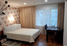 Проживала сначала в номере джуниор сюит, расположенном на первом этаже: очень комфортно, просторно, стильно. Единственное, если окна выходят на прогулочную улицу - днем может быть шумно На обратном пути остался только стандартный номер, расположенный на втором этаже. Из плюсов - целых 4 окна! Это очень здорово. Шум с улицы не доносился. Однако был странный запах, а на полу в душе обнаружила волосы и забитый слив, откуда после включения воды выплыл мусор В целом отель очень хороший, расположение шикарное, персонал приветливый. Если бы не состояние ванной комнаты во втором номере - однозначно поставила бы 5 баллов
