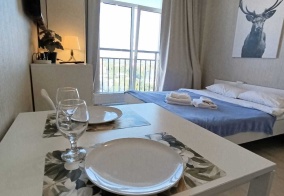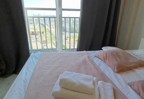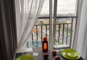 Мы останавливались в семейных апартаментах на неделю. И так, начнем с плюсов: - Близость к аэропорту, буквально 15-20 минут на автобусе до аэропорта; - Хорошая транспортная доступность, остановка автобуса в 7 минутах ходьбы, станция метро Звёздная чуть подальше (~15) минут; - Рядом магазины (Пятерочка прям в доме), пункт выдачи Озон, магазин готовой продукции Uppetit (брали там два дня ужины, очень даже неплохо), по дороге к\с метро есть Перекрёсток, Хлебник, и торговый центр с фуд-кортами; - Прекрасный вид из панорамных окон в комнате с двумя кроватями. Спали только там, днём и ночью поют птички; - Удобная кровать и подушки, спали превосходно; - В апартаментах есть почти все для комфортного пребывания, за исключением таких вещей как бумажные полотенца, и хотелось бы хоть какой-то веник там иметь, чтобы элементарно песок с прихожей не тащить в комнаты; - Гель для душа, щетки, тапочки и т.д. - всё это было. Теперь о минусах: - Не очень хорошая уборка апартаментов (на фото увидите). Справедливости ради, на третий день пребывания я написала в мессенджере представителям - пришли и убрались, но все равно пыль так и осталась клубиться на полу)); - Бойлер - это тихий ужас, он либо не отрегулирован так, как нужно, либо я не знаю что это за издевательство над людьми. Если вы думаете, что один из вас будет принимать душ, а второй, скажем, мыть посуду - забудьте. Напора просто не хватает, смываешь туалет - напора холодной воды просто нет. Огромный совет владельцам разобраться с этой проблемой, потому что это действительно очень дискомфортно; - Один день проснулись от воя сигнализации, которая сообщала, что необходимо эвакуироваться, будьте готовы, такой себе будильничек); - Выше я уже писала, что не хватает мелочей вроде бумажных полотенец, веника, ножей тоже желательно хотя бы парочку еще, подлинее); - Очень шумный холодильник, который тарахтит день и ночь; - На кухне очень темно из-за лоджии (по фото этого не видно), у меня создавалось ощущение, что я нахожусь в подземелье); - Плохая сантехника, краны и душевая лейка - все самое дешевое, разболтанное, которое уже пора бы заменить на что-то более качественное, в ванной грибок на плитке, шторку душевую лучше бы постирали, либо заменили. В целом я скорее рекомендую апарты. За прекрасный вид из спальни и пение птиц я готова простить почти все минусы, кроме водогрейной колонки)