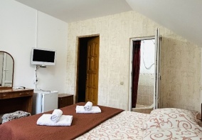 14 дней и 13 ночей провели мы с внучкой в гостевом доме . Местоположение понравилось тем, что рядом ул.Ленина и автобусные остановки соответственно . Пляж близко . Курортный городок оживлен и всегда есть куда сходить . Номер у нас был на 1 этаже . Весь джентльменский набор: ТВ, кондиционер , холодильник, чайник -все работало отлично . За две недели нам заменили постель один раз и два раза комплект полотенец . Нам этого хватило . На территории хорошая кухня со всем необходимым, поэтому приготовить можно хоть банкет . Чисто , уютно . Спали спокойно , никто не орал , не мешал . Единственное , если кто-то не может переносить сирену скорой и полиции , то надо подумать о другом месте . Поскольку сирены орут и день и ночь . Но нас это не напрягало. Напрягал немного матрас . Там уже пружины не спрятать и поэтому , когда я на коленях постояла на матрасе , играя в карты с внучкой , то синяки остались надолго ) Этот вопрос надо бы решить собственнику . А так , спасибо ! Все отлажено : встретили , проводили , решали возникшие вопросы .