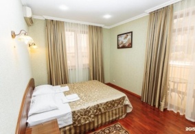 Теснота номеров! Из минусов: долго не отвечали на сайте примут нас или нет. Далее заселились в 3-х местный номер, по параметрам это 2-х местный номер, просто в том месте, где очень нужен стол и зона для того, чтобы ходить, поставили ещё одну кровать. Ходить буквально негде! Бочком между кроватями или сразу с порога в кровать. Дверные ручки все сломаны. Почему бы не отремонтировать??? Обои отходят, смеситель шатается, весь проржавел, также как и туалетные аксессуары. В номере не убрались за 5 суток не разу. Урна была переполнена, мы взяли свой мусорный пакет, положили туда фантик, после прогулки обнаружили, что наш мусорный пакет с фантиком убран, а переполненная пахнущая урна нет! Как так? Было 4 полотенца на 2 персоны. Псоле прогулки обнаружили, что их унесли, оставив всего по 1 полотенцу на человека. Странное обслуживание. Попросили отрпемонтировать унитаз, так как слив после нажатия не прекращался ( владелец просто сбавил напор, весело))), попросили отремонтировать не показывающий тв, владелец просто воткнут провод без штекера в гнездо (естественно тв после этого не показывал всё равно, мы больше ни о чём не просили. Также нет приветственных стаканов, ложек, кофе, чай, салфеток... Всё это очень необходимо в отеле. Подкупила информация, что имеется общая открытая кухня. В дождь туда не зайти. Полотенец там нет, прихваток нет. Мыла нет! Сковородки в таком ужасном виде, что тошнит от них. Дермантин на диванах весь потрескался, скатерти на столах очень грязные. Хозяева!!! Вы же с людьми работаете, как так??? В туалете мусорное ведро настолько огромное, что когда садишься на унитаз, неволей задеваешь бедром его... Фууу... А габариты этого ведра не позволяют его переставить в другое место. Поставьте вы уже ведро меньшего размера... Слышимость в отеле очень сильная. Из плюсов: подкупило наличие подогреваемого бассейна. Это просто класс!!! Изюминка отеля!!! Купались каждый вечер (в ноябре), очень тепло и комфортно! Также из плюсов наличие кафе на первом этаже (но цены на блюда оказались для нас высоки). Сам отель неплохо оформлен, кафельная плитка, места общего пользования, лестницы, кулер всегда полный. С эти проблем нет. Расположение очень удобное! Мини-маркеты рядом. Сюда мы больше не вернёмся.