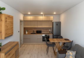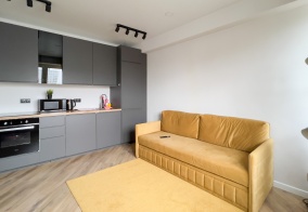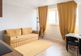 Светлая, уютная квартира на пятом этаже 9-ти этажного дома. В 4 км находится горнолыжный комплекс «Горный воздух». Этот вариант отлично подойдет для любителей горнолыжного спорта. Расстояние до аэропорта составляет 9 км, а до железнодорожного вокзала — 4 км. Для размещения гостей имеются 1-комнатные апартаменты Улучшенные. В гостиной — двуспальная кровать, диван двуспальный, двухъярусная кровать, стенка, шкаф, журнальный столик, телевизор. На кухне имеется кухонный гарнитур, стол, микроволновая печь, чайник, посуда. Также для удобства гостям предоставляются стиральная машина, фен, утюг, гладильная доска, сушилка для белья , постельное белье и полотенца. К услугам гостей в апартаментах работает высокоскоростной Wi-Fi. Рядом с домом расположена общественная парковка. В доме работает лифт. ...