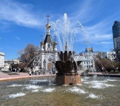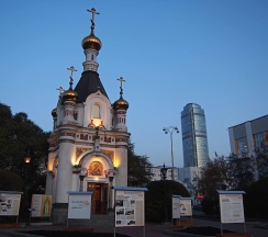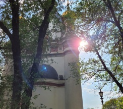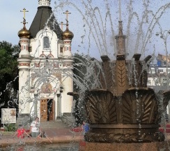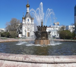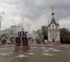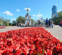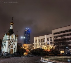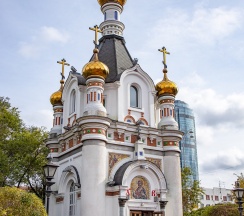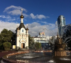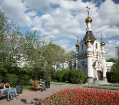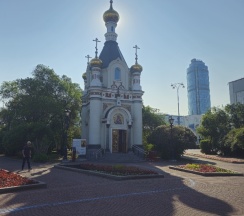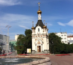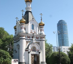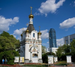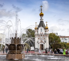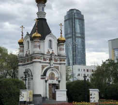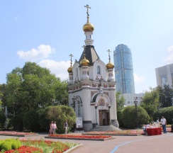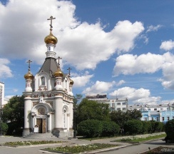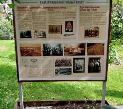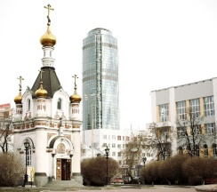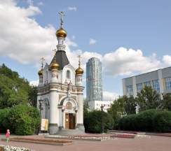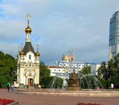 В самом начале своего существования площадь Труда эта называлась Екатерининской в честь стоявшего здесь первого храма города – Екатерининского собора. Храм имел статус Горного, то есть ведомственного, здесь приносили присягу горные инженеры. Храм был освящен в 1726 году, полгода спустя после освящения императрица Екатерина I прислала храму свой царский подарок: священнические облачения, комплект богослужебных книг и серебряную церковную утварь. В 1869 году в храм было передано знамя Уральского горнозаводского батальона, пожалованное императором Александром II, – с тех пор присягу в храме стали приносить и армейские новобранцы. Престольный праздник день святой Екатерины вплоть до революции оставался в Екатеринбурге для всех праздничным нерабочим днём. А трёхъярусная колокольня Екатерининского собора использовалась не только по прямому назначению, но и как дозорная и пожарная вышка, на ней же были установлены первые часы-куранты, по которым сверял время весь город. В 1930 году храм был уничтожен. В 1998 году рядом с местом, где был расположен алтарь, была построена Часовня Святой Екатерины. В 2003 году в часовню поместили капсулу с землей с места захоронения основателя города Василия Татищева.