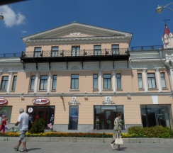 Здание нотариальной конторы, оформлено в псевдоготическом стиле. По стилистике дом, который ближе к Вайнера – это классицизм, а тот, что ближе к памятнику Ленину, – неоготика. Готическо-мавританский декор: башенки, лепнина – появились предположительно в конце 1880-х годов.Из интерьера зданий до нашего времени дошла лишь рельефная лестница с европейским орнаментом. О её происхождении известно мало: по разным версиям, она приехала в дом из Петербурга или даже была сделана на Урале, на тагильских заводах Демидовых с оглядкой на северную столицу.