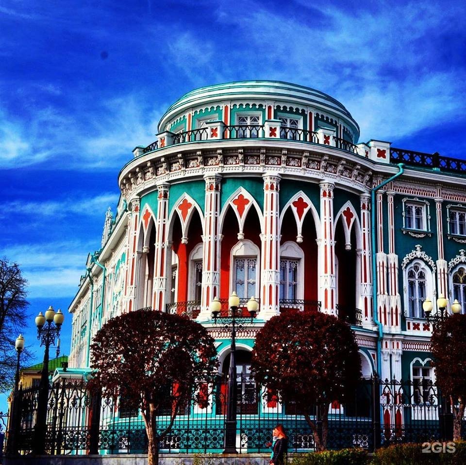Одна из самых известных архитектурных достопримечательностей Екатеринбурга. Дом с ротондой впервые упоминается в документах 1817 г. Изначально он был построен в стиле классицизма. Нынешний облик особняк обрел в 1866 г. Тогда коллежский асессор Н. И. Севастьянов перестроил его в неоготическом стиле с барочными элементами. Через несколько лет Севастьянов уехал в Санкт-Петербург, а дом продал казне. С 1874 по 1917 гг. в особняке размещался окружной суд, в советское время — областной совет профсоюзов, в 1990-х гг. — офисы, а в 2008 г. здание реконструировали к саммиту ШОС под резиденцию президента РФ. Тогда дом Севастьянова вернул себе изначальные цвета фасада: белый, зеленый, терракотовый.