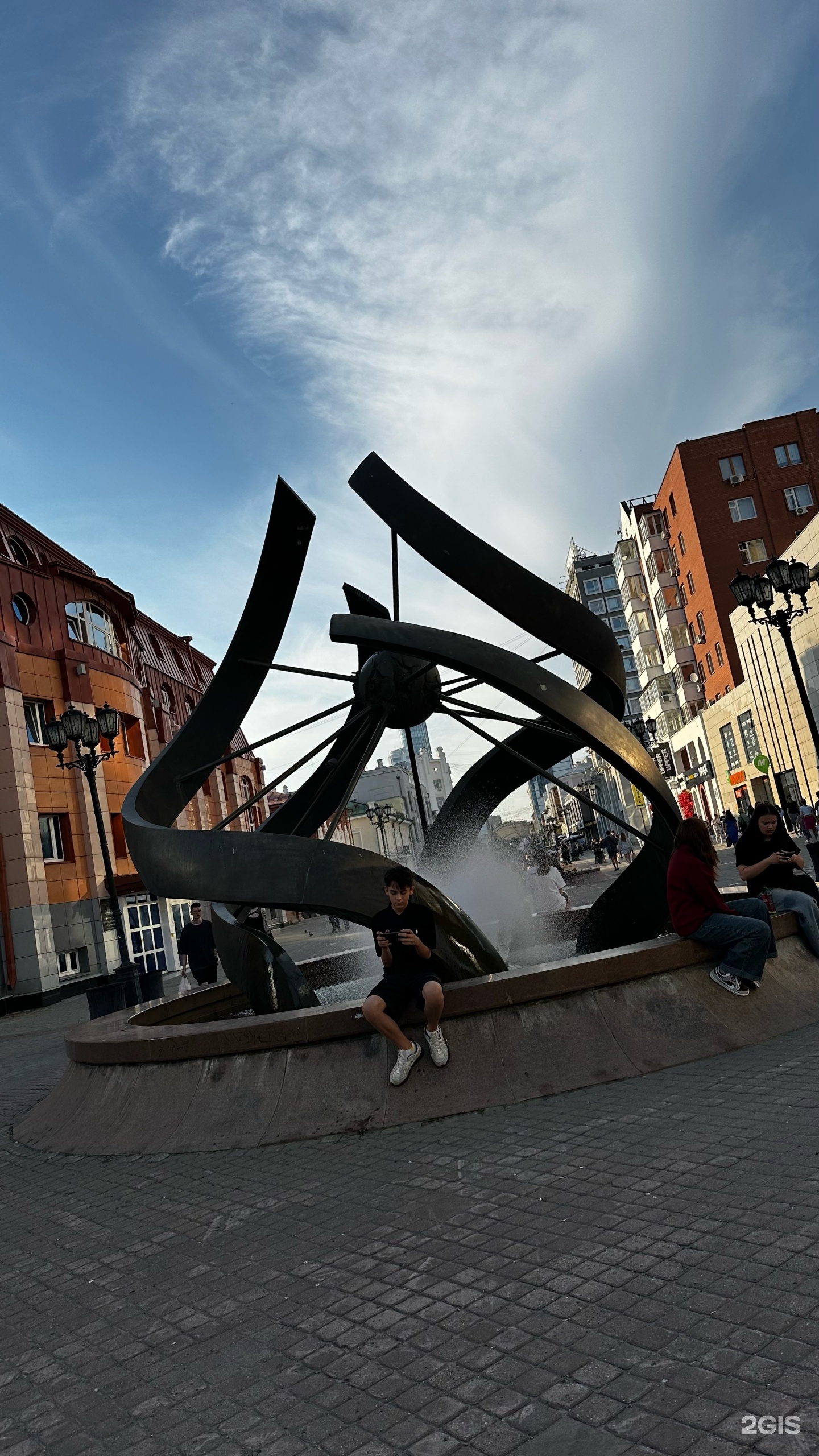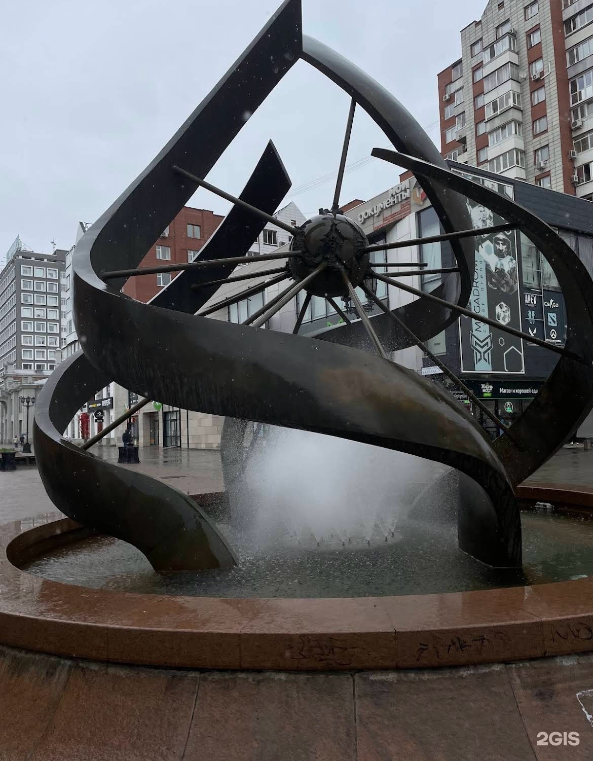 Фонтан представляет собой спираль времени, в центре которой шар, висящий на водяном столбе. Лучи, соединяющие временные потоки, символизируют наш мир. Фонтан еще раз напоминает нам о том, что прошлое, настоящее и будущее тесно связаны между собой, ведь без прошлого нет будущего.