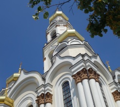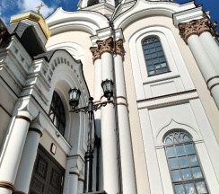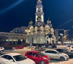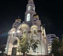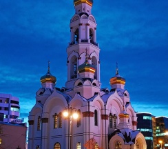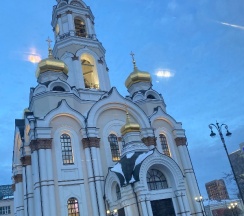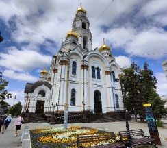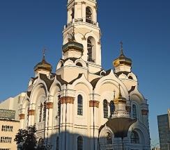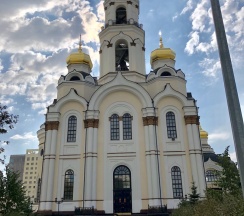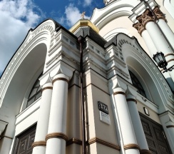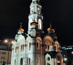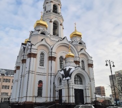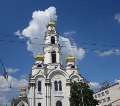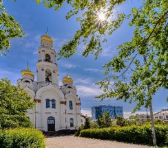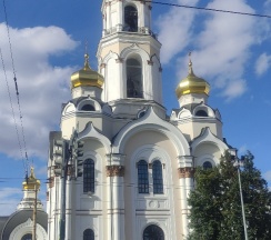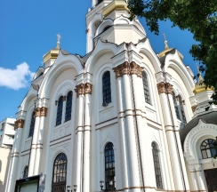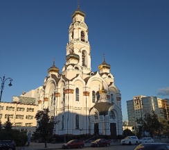 Размеры храма составляли 32 метра в длину и 24,5 метра в ширину. Всего было пять куполов, средний из которых устремлён вверх в качестве колокольни. При площади 500 м² он вмещал до 2750 прихожан. Храм был самым высоким зданием города, его высота достигала 77,2 метра. После восстановления храм имеет высоту 65 метров. На колокольне 10 колоколов общим весом 23,9 тонны (от 9,08 кг до 16625 кг). Здание храма выполнено в «русско-византийском стиле».