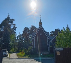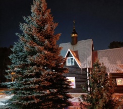 Очень красивый деревянный храм с прилегающей зеленой территорией. Работает церковная школа.