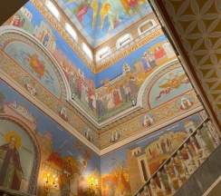 Центр включает несколько выставочных залов с регулярно меняющимися экспозициями, небольшой концертный зал, где проходят концерты фортепианной музыки, исполняются произведения русских и мировых классиков, библиотеку, храм в честь святителя Николая Чудотворца и многое другое. Особый интерес представляют настенные росписи Патриаршего подворья, изображающие различные моменты российской истории, начиная с крещения благоверной княгини Ольги.