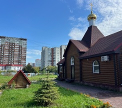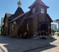Если кто не знал, но 70 лет назад на этом месте стоял большой храм Николаю Чудотворцу и сквер от наркологии принадлежал Ипархии, но сейчас им приходится платить аренду за свою же землю. Рыночная экономика блин. Сам храм бревенчатый и собран из оцилиндрованного бревна всего за 9 часов. Есть даже звонница :-):-) Все как полагается. По воскресениям идут службы с 9,30 утра. Исповедь и причастия. Ведут службы два батюшки и хор.