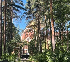 С одной стороны, находится в черте города. С другой стороны, далёк от городской суеты, окружён сосновым бором.Вокруг природа,тишина и благодать.