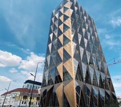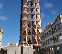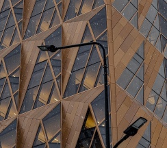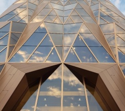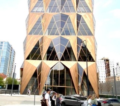 Фактура фасадов вдохновлена структурой кристаллической решетки меди. Нижние части модулей-кристаллов, из которых состоит фасад, — прозрачные, чтобы впустить больше солнца зимой, когда оно низкое. Верхние — наоборот металлические, чтобы защищать от лучей высокого солнца летом.