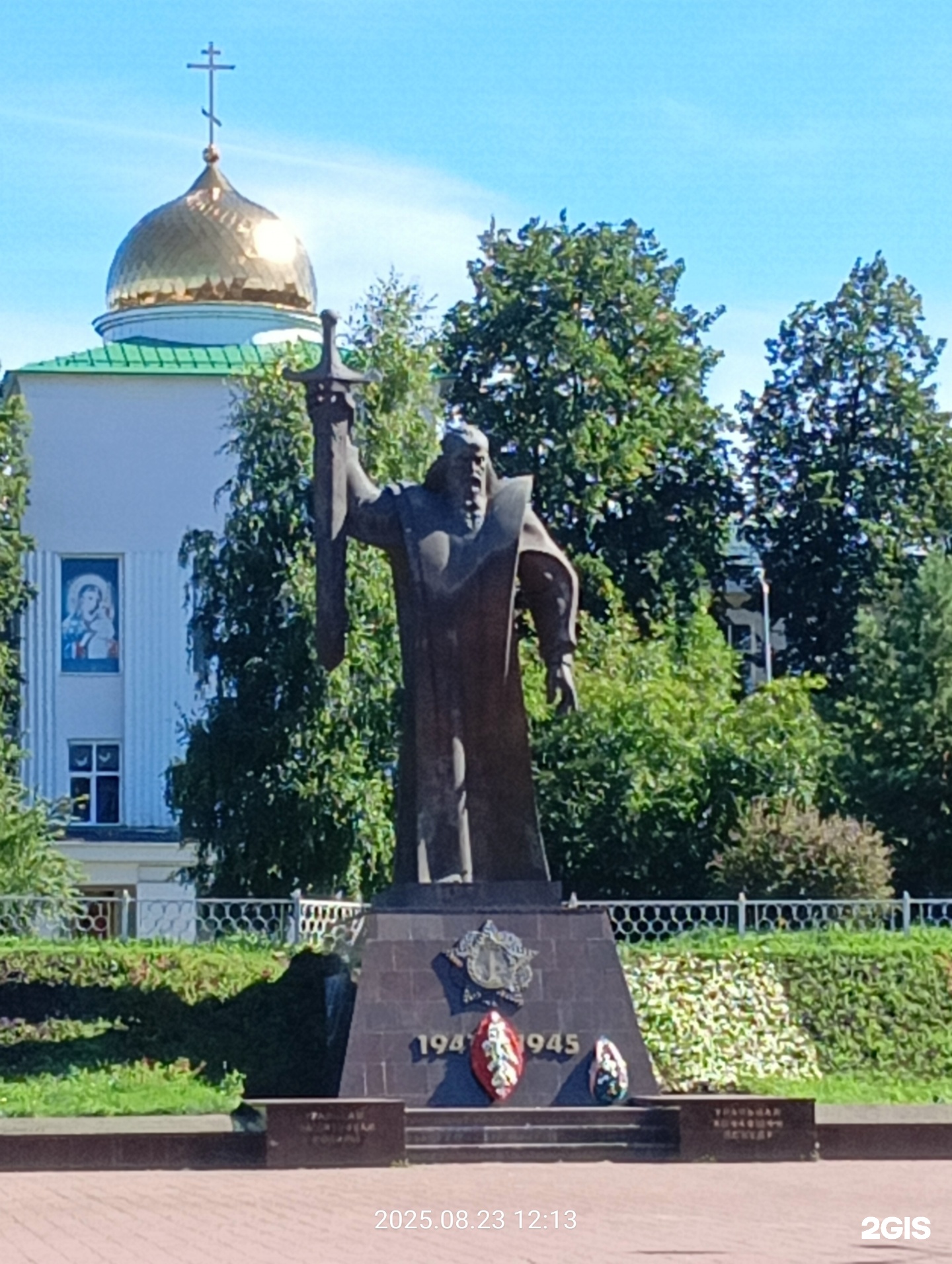 На возвышенности располагается скульптура, олицетворяющая Седой Урал, ковавший оружие для фронта и отправлявший на поля сражений своих лучших сыновей и дочерей. Екатеринбургский скульптор Геворг Геворкян, известный горожанам как автор памятника Пушкину, установленного в литературном квартале, увидел этот образ в виде мощной фигуры седого уральского мастера-кузнеца, держащего в руке вложенный в ножны меч.