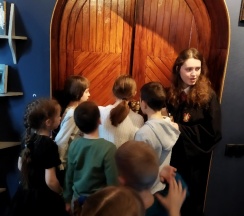 Грамотно продумано передвижение с детьми. Было около 15 детей, их разбили на команды и вели каждую по своему маршруту. Дети друг другу не мешали, не было толпы и все были задействованы в заданиях.